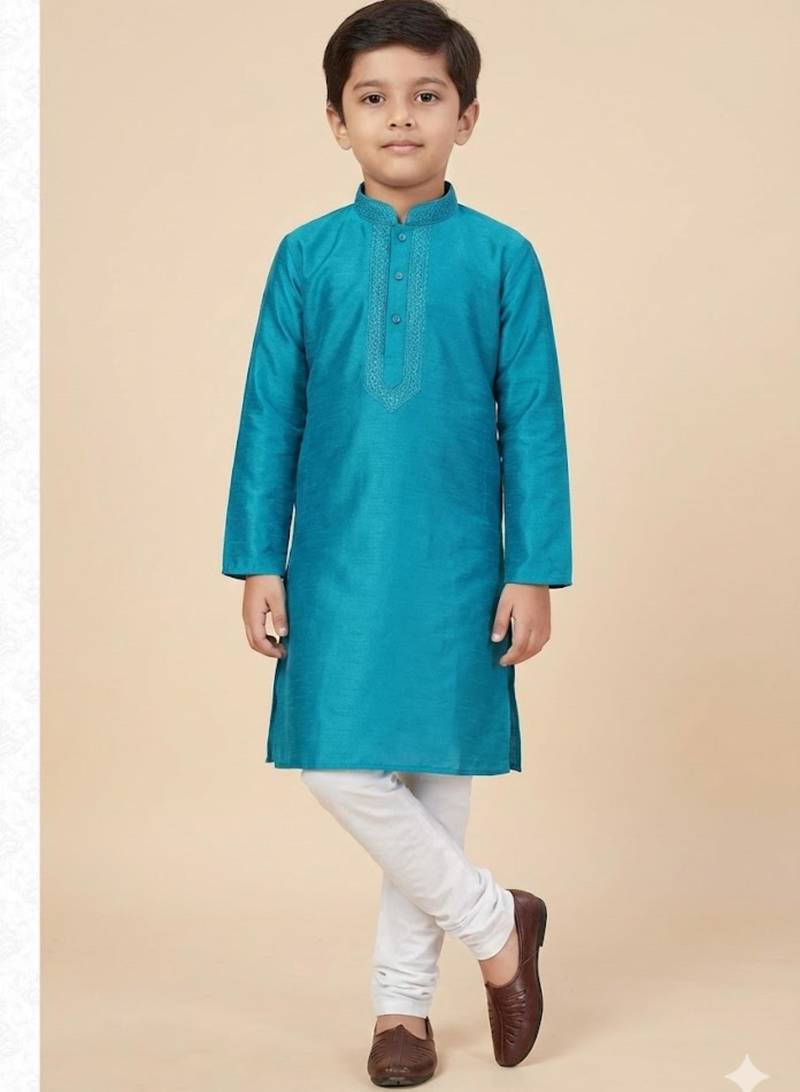 • Product Id : 4673273 • Package Details : 1 Kurta / 1 Pajama • Type : Kids Kurta Pyjama • Work : Printed • Look : Traditional • Sleeve : Full Sleeve • Bottom Fabric : Art Silk • Bottom Color : Off White • Top Color : Blue • Top Fabric : Cotton • Stitching : Stitched • Gender : Boy Need Help ?About the Seller