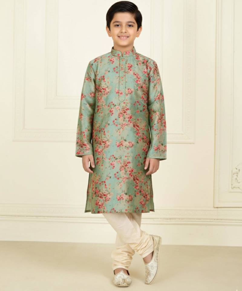 • Product Id : 4673246 • Package Details : 1 Kurta / 1 Pajama • Type : Kids Kurta Pyjama • Work : Printed • Look : Traditional • Sleeve : Full Sleeve • Bottom Fabric : Art Silk • Bottom Color : Off White • Top Color : Green • Top Fabric : Art Silk • Stitching : Stitched • Gender : Boy Need Help ?About the Seller