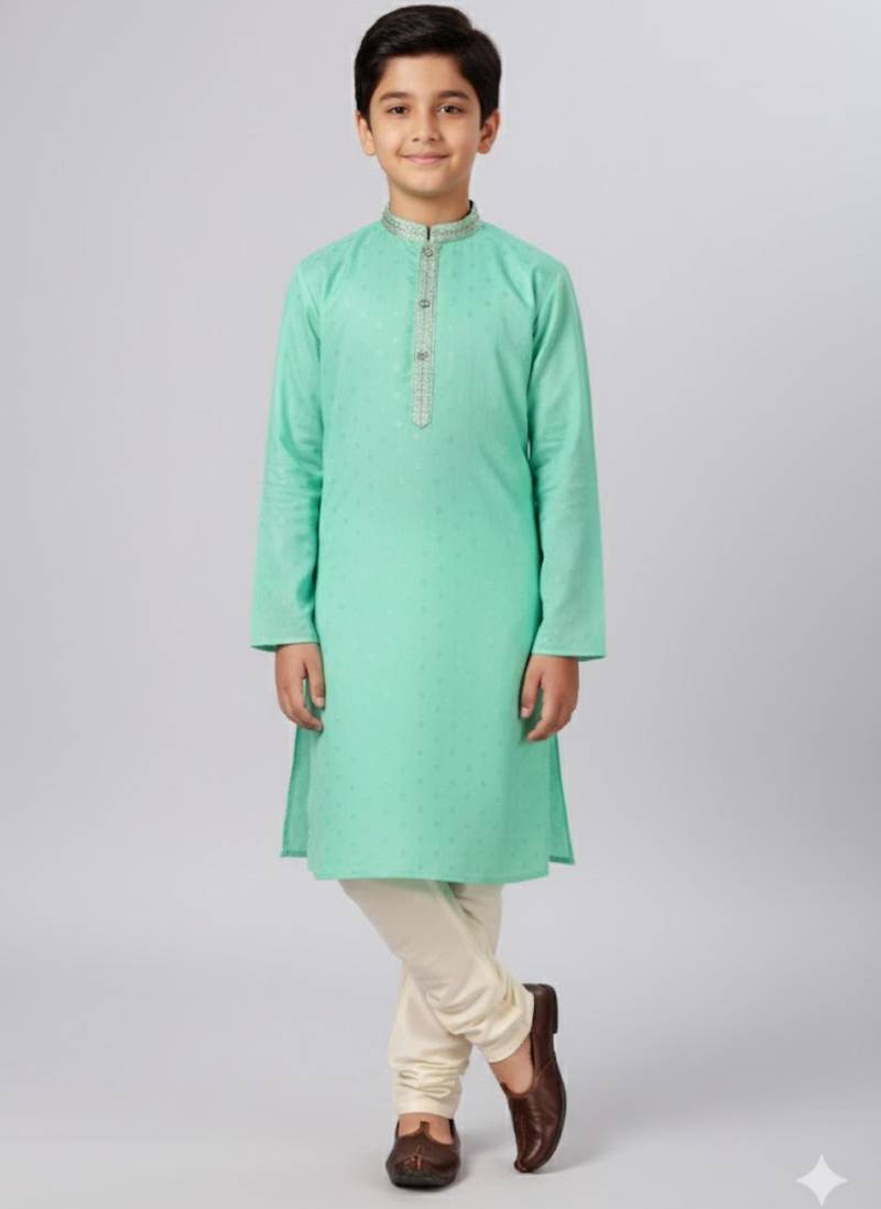 • Product Id : 4673233 • Package Details : 1 Kurta / 1 Pajama • Type : Kids Kurta Pyjama • Work : Printed • Look : Traditional • Sleeve : Full Sleeve • Bottom Fabric : Art Silk • Bottom Color : Off White • Top Color : Green • Top Fabric : Cotton • Stitching : Stitched • Gender : Boy Need Help ?About the Seller