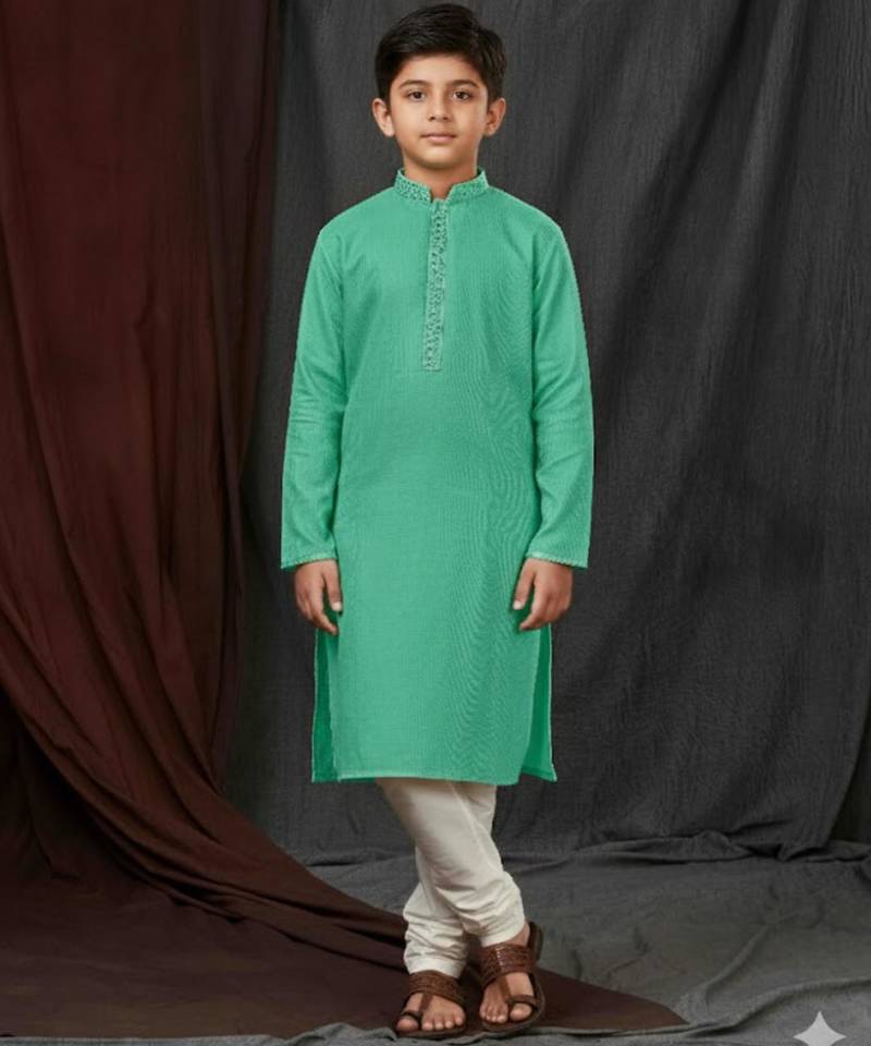 Green Jacquard Printed Kurta Pajama For Boys