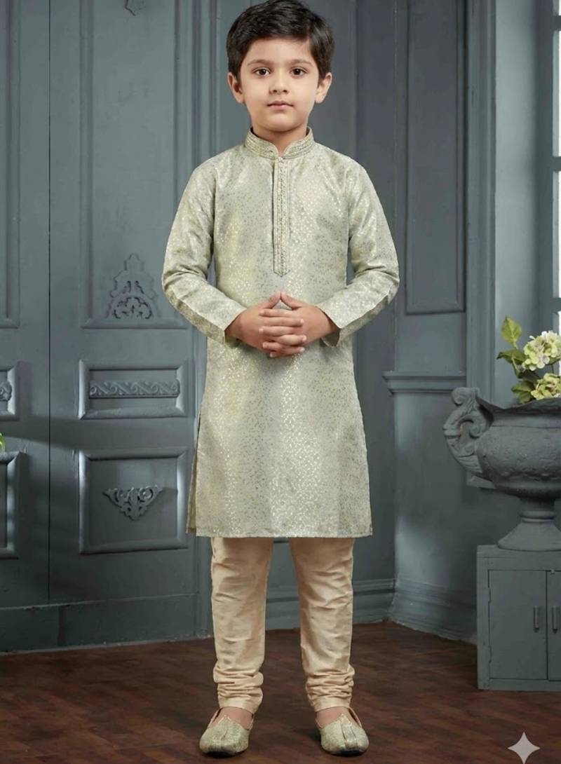 Grey Printed Poly Jacquard Kurta Pajama For Kids