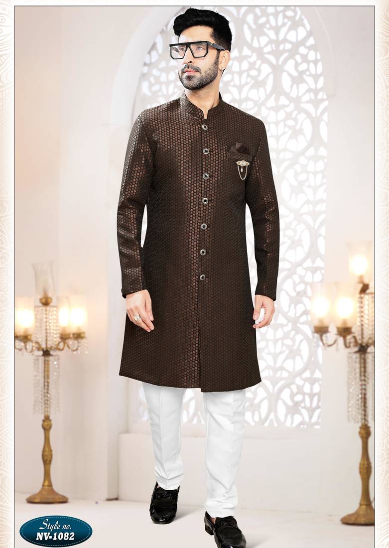 • Product Id : 4684492 • Package Details : 1 Sherwani/1 Polo Pant • Type : Sherwani • Work : Printed • Bottom Style : Trouser • Color : Brown • Bottom Color : White • Top Color : Brown • Top Fabric : Jaquard • Stitching : Stitched Payments [+]