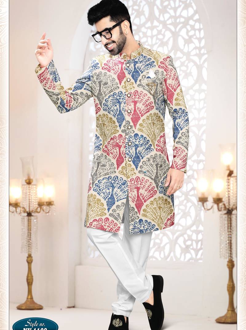 • Product Id : 4684531 • Package Details : 1 Sherwani/1 Polo Pant • Type : Sherwani • Fabric : Linen • Work : Printed • Bottom Style : Trouser • Color : White • Bottom Color : White • Top Color : White • Top Fabric : Linen • Stitching : Stitched Payments [+]
