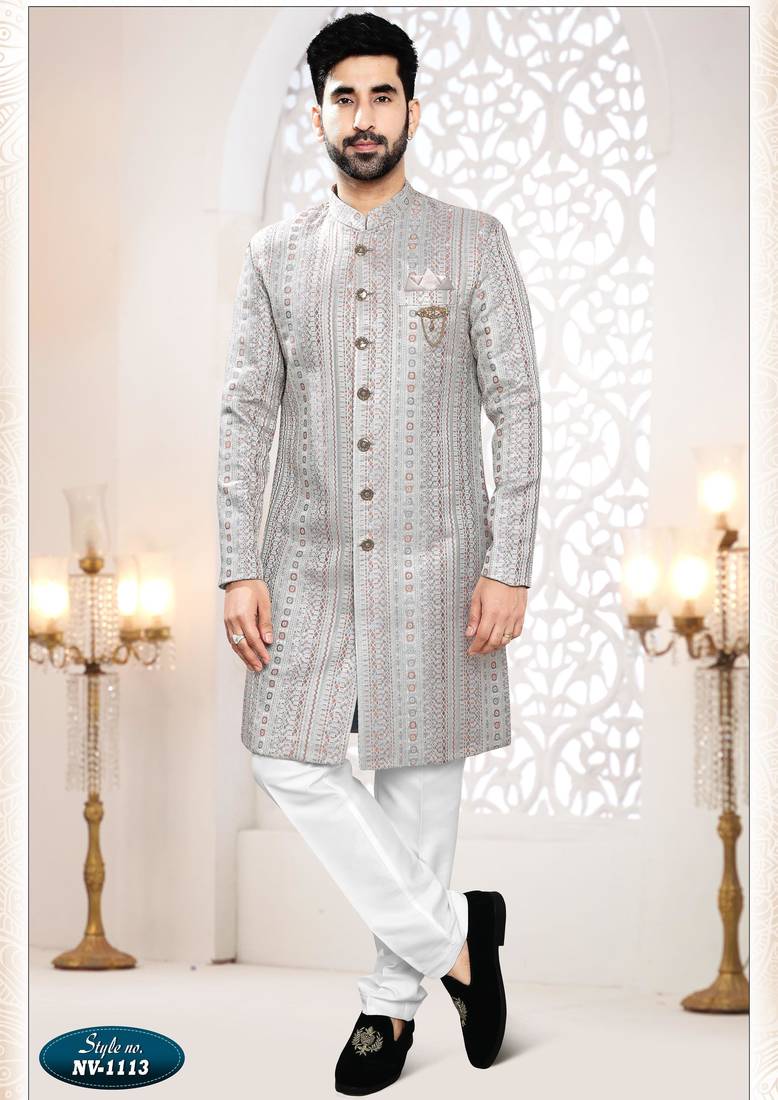 • Product Id : 4684519 • Package Details : 1 Sherwani/1 Polo Pant • Type : Sherwani • Fabric : Jacquard • Work : Printed • Bottom Style : Trouser • Color : Grey • Bottom Color : White • Top Color : Grey • Top Fabric : Jacquard • Stitching : Stitched Payments [+]