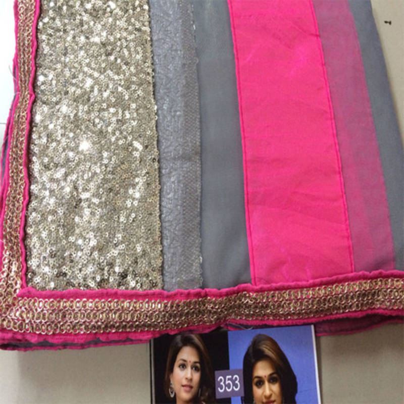 Shraddha Das Grey And Pink Embroidered Net Saree With Blouse