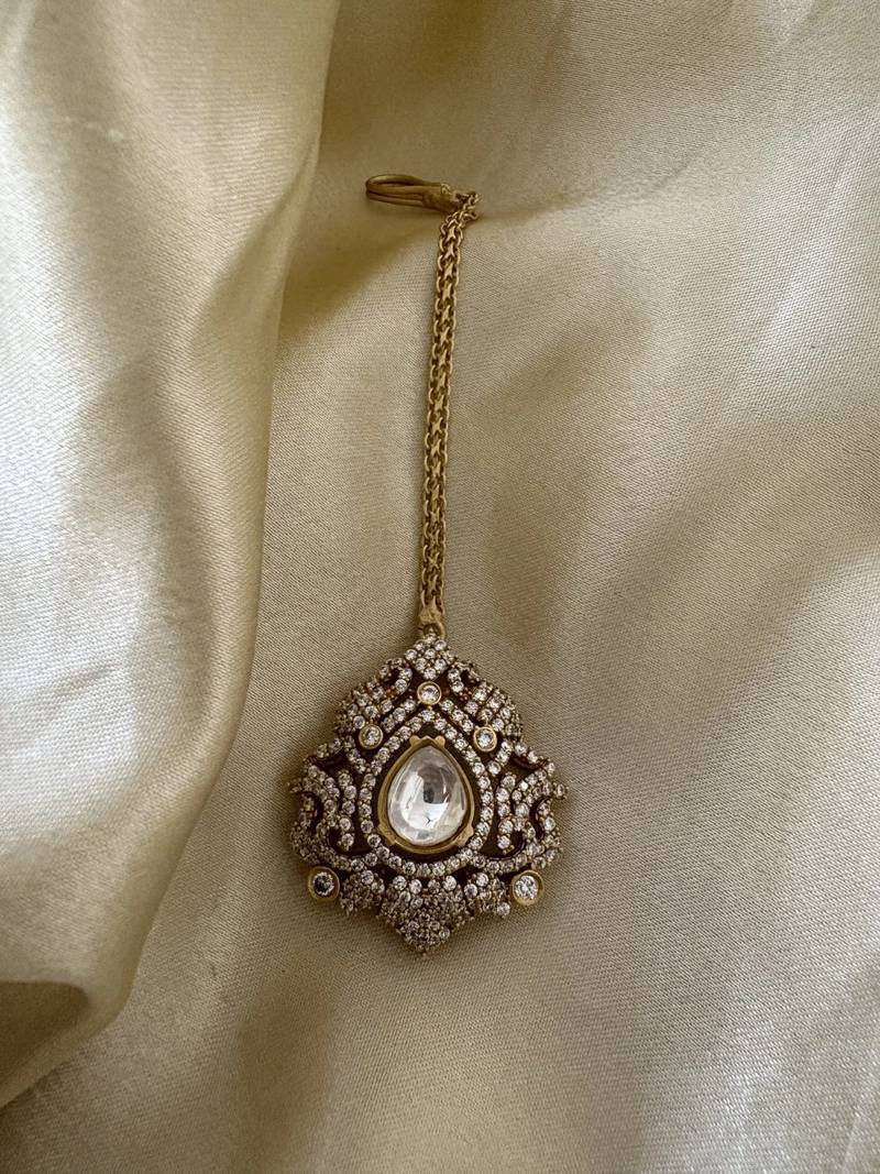 If you find the product for less we'll match it! Know MoreThis floral motif Polki maangtikka features intricate American Diamond work, an exquisite finish,making it the perfect accessory to infuse any outfit with grace and elegance.