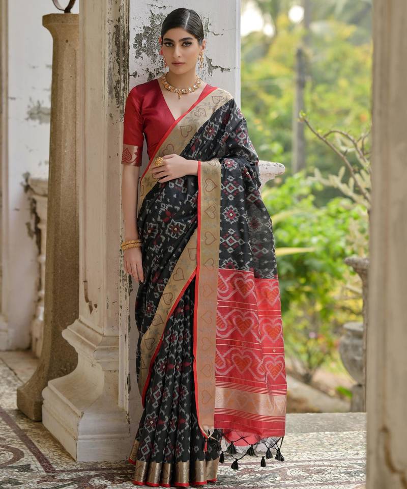• Border : Designer Border • Color : Black • Fabric Of : Raw Silk • Color : Black Blouse Details