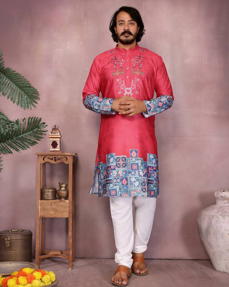 • Product Id : 4707555 • Package Details : 1 Kurta /1 Trouser Pant • Type : Kurta Pajama • Region : India • Work : Embroidered • Type : Sequins Work • Look : Traditional • Sleeve : Full Sleeve • Neck Style : Chinese Collar Kameez • Color : Red • Bottom Color : White • Top Color : Red • Bottom Style : Pyjama • Bottom Fabric : Blended Cotton • Top Fabric : Khadi • Fabric : Khadi • Stitching : Stitched Payments [+]