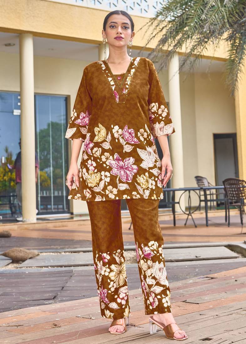 • Product Id : 4755020 • Package Details : 1 Top/1 Bottom • Type : Co Ord Sets • Fabric : Cotton • Work : Printed • Type : Floral Print • Sleeve : Half Sleeve • Neck Style : Square Neck • Color : Mustard • Stitching : Stitched • Occasion : Ethnic • Style : Classic • Length : Midi • Length : Midi General - Color and Texture may have slight variation. This happens because of photography.