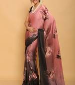 Pink Digital Printed Pure Japan Satin Saree With Blouse