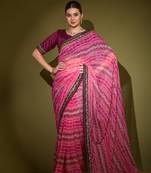 Pink Foil Print With Sequin & Diamond Georgette Saree With Blouse