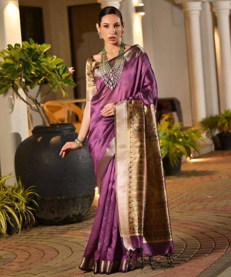 Purple Soft Khadi Raw Silk Zari Woven Saree With Blouse