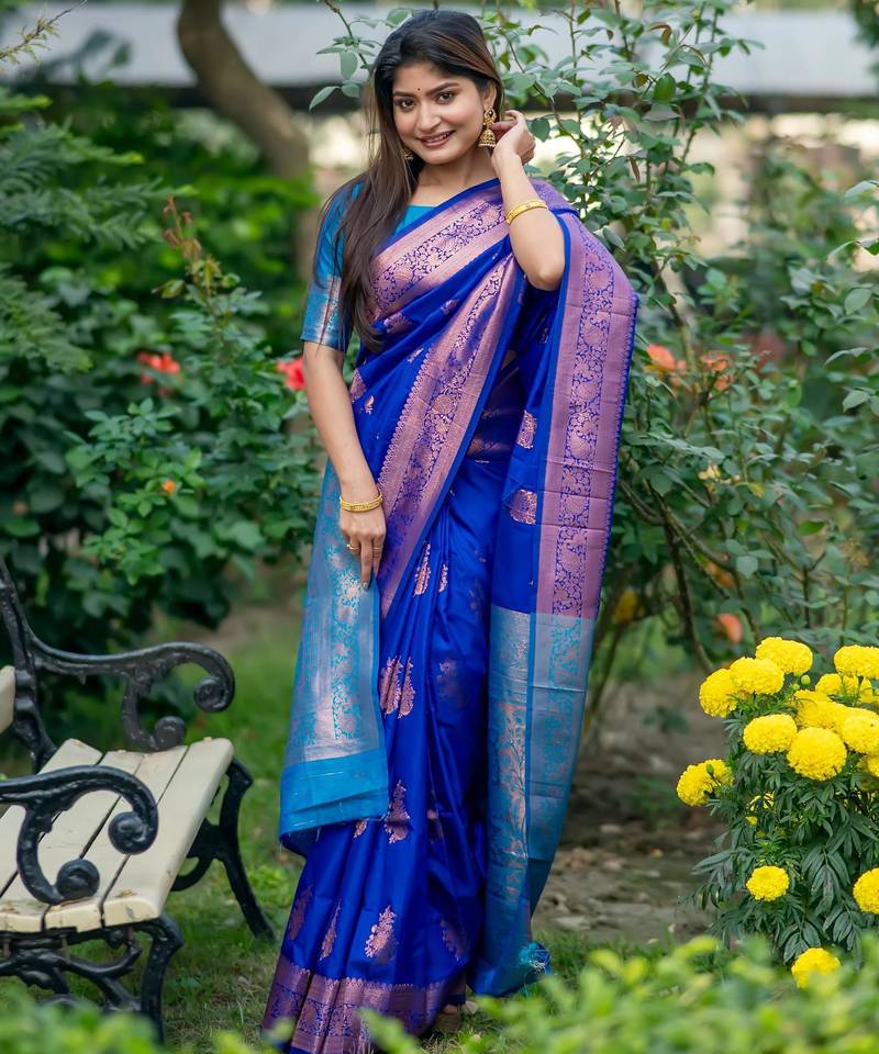 Royal Blue Soft Banarasi Silk Zari Woven Saree With Blouse