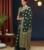 Designer Bottle Green Zari Weaving Work Georgette Saree