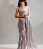 Dusty Grey Handwork Zarkan Embroidery Silk Party Wear Saree