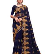 Navy Blue Resham Zari Embroidery Work Net Saree