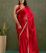 We unfurl our creations in this style of a attractive Red Color chiffon silk Saree. Beautified with Lace border work on the saree designs look classic. This saree comes with unstitched matching Red Color Blouse Piece. This saree is perfectly suits for party wear. The size of saree is 5.5 meter and blouse size is 0.8 meter. Blouses with elaborate patterns and Colors are used for photo shoot. Color and patterns of the blouse might not be as shown in the image.Designs, Colors and patterns on the actual product may slightly vary from designs shown in the image. Images are only representative.
