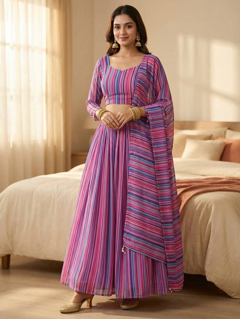 Georgete Striped Printed Semi Stitched Lehenga Choli