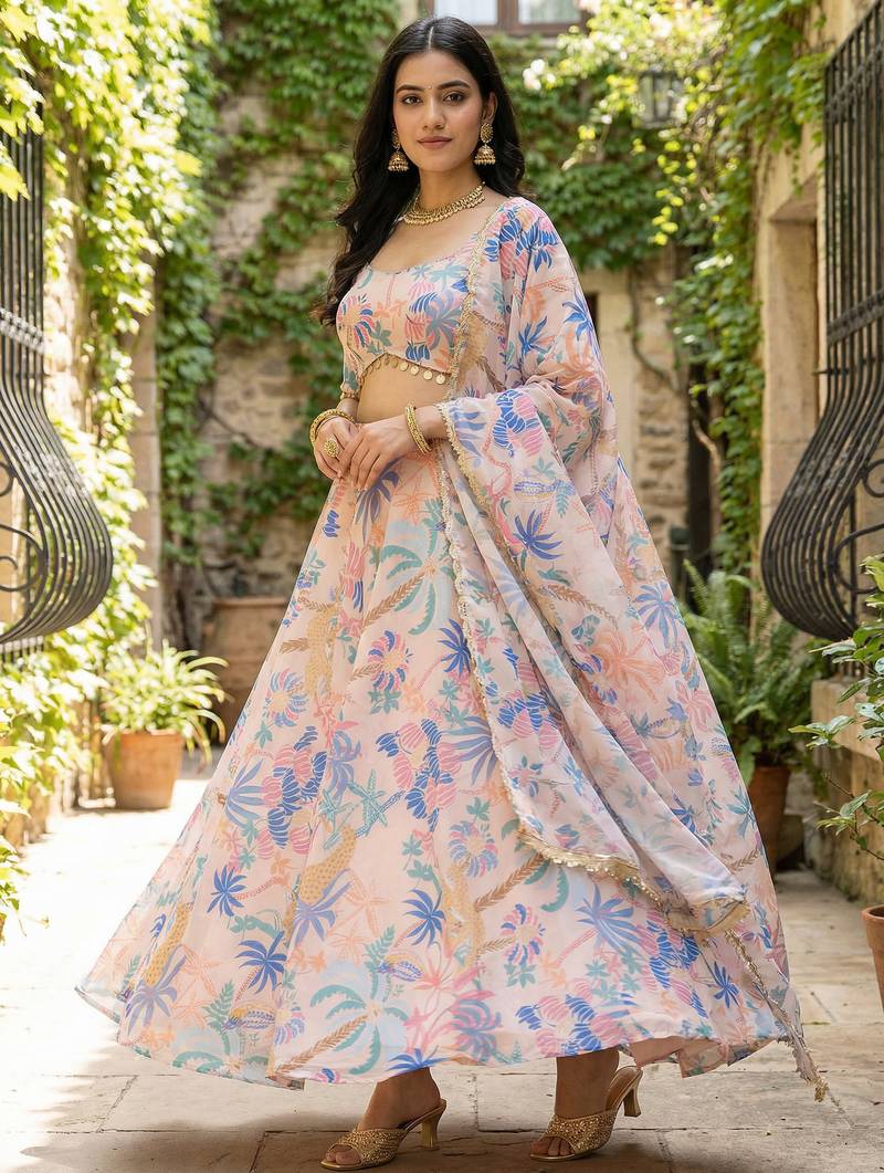 Georgete Tropical Printed Semi Stitched Flaired Lehenga Choli
