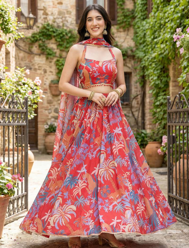 Georgete Tropical Printed Semi Stitched Flaired Lehenga Choli