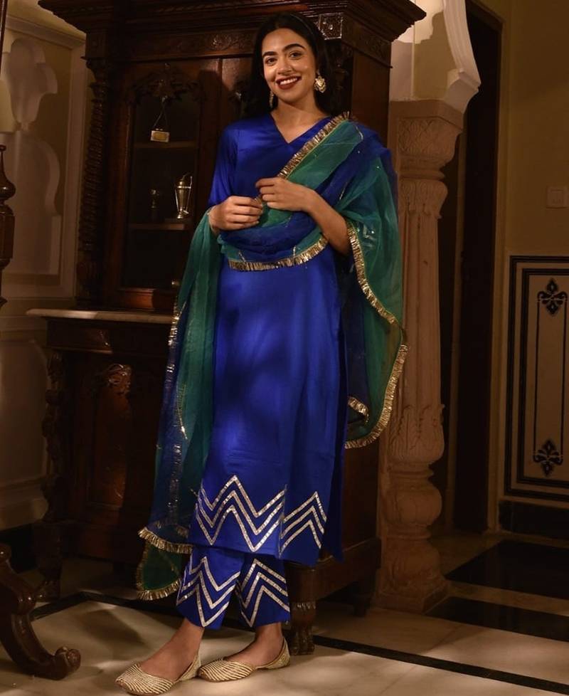 If you find the product for less we'll match it! Know More• Product Id : 4746351 • Package Details : 1 Kurta/ 1 Pant/ 1 Dupatta • Type : Plus Size Kurtis • Fabric : Cotton Silk • Work : Embroidered • Type : Gota Patti • Sleeve : Quarter Sleeve • Color : Blue • Stitching : Stitched • Length : 48.0 General - Color and Texture may have slight variation. This happens because of photography.