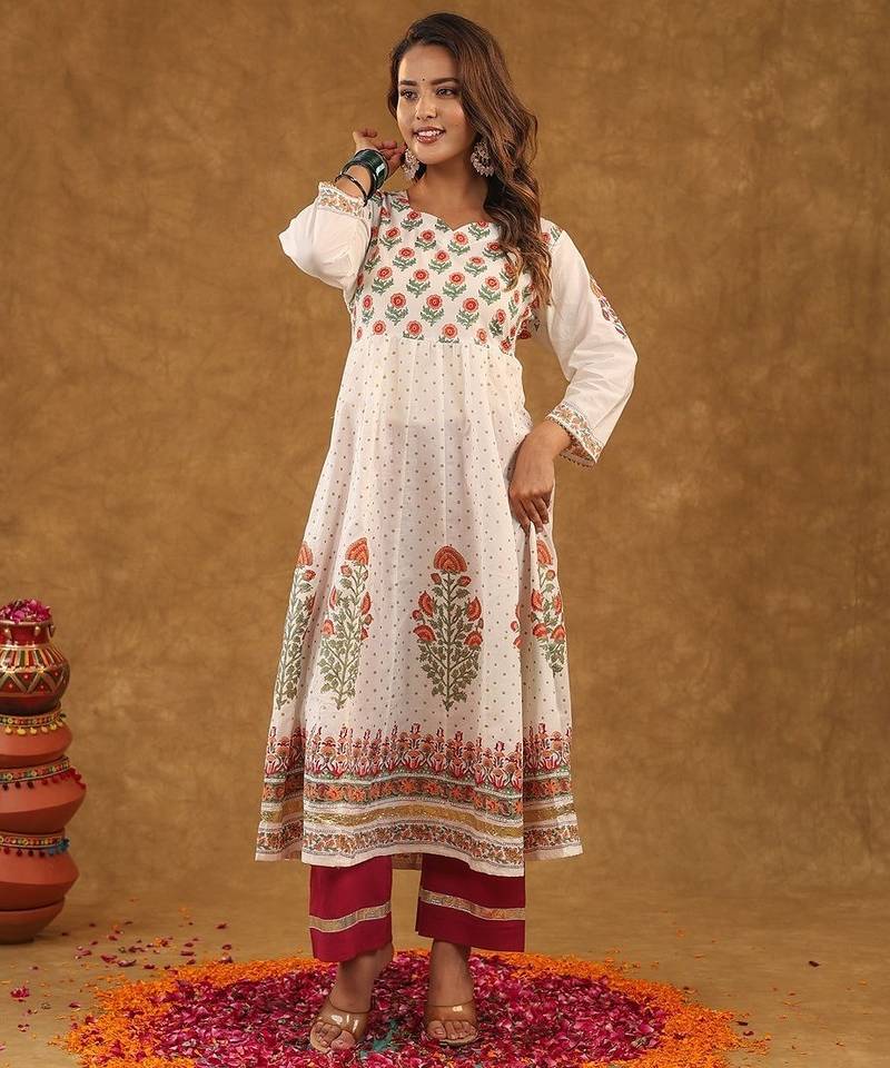 • Product Id : 4717342 • Package Details : 1 Kurta/ 1 Pant/ 1 Dupatta • Type : Plus Size Kurtis • Fabric : Cotton • Work : Printed • Type : Block Print • Look : Fashion • Sleeve : Quarter Sleeve • Neck Style : Round Neck • Color : Off White • Stitching : Stitched • Length : 48.0 Payments [+]