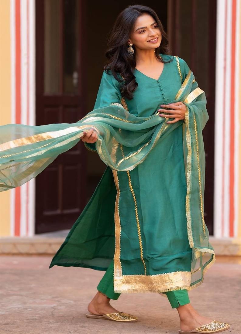 If you find the product for less we'll match it! Know More• Product Id : 4746355 • Package Details : 1 Kurta/ 1 Pant/ 1 Dupatta • Type : Plus Size Kurtis • Fabric : Silk • Work : Embroidered • Type : Gota Patti • Sleeve : Quarter Sleeve • Color : Turquoise • Stitching : Stitched • Length : 48.0 General - Color and Texture may have slight variation. This happens because of photography.