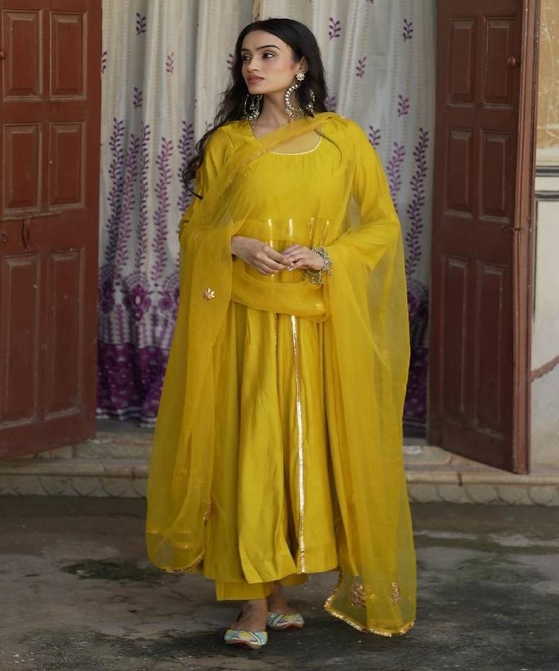 If you find the product for less we'll match it! Know More• Product Id : 4746344 • Package Details : 1 Kurta/ 1 Pant/ 1 Dupatta • Type : Kurta Sets • Fabric : Silk • Work : Embroidered • Type : Gota Patti • Sleeve : Quarter Sleeve • Color : Yellow • Stitching : Stitched • Length : 48.0 - 5-8 business days in addition to order delivery time.This service is provided to customers outside India only.