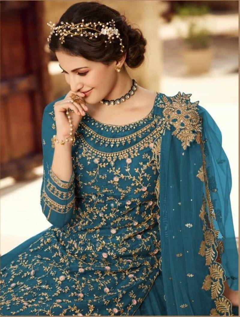• Product Id : 4308662 • Package Details : 1 Top / 1 Bottom / 1 Dupatta • Type : Semi Stitched Salwar Suits • Occasion : Festive • Work : Embroidered • Type : Zari Work • Look : Traditional • Sleeve : Full Sleeve • Neck Style : Round Neck • Stitching : Semi Stitched • Fabric : Net • Color : Teal • Min Bustsize Fit : 36 Inch • Max Bustsize Fit : 46 Inch Stitching [+]