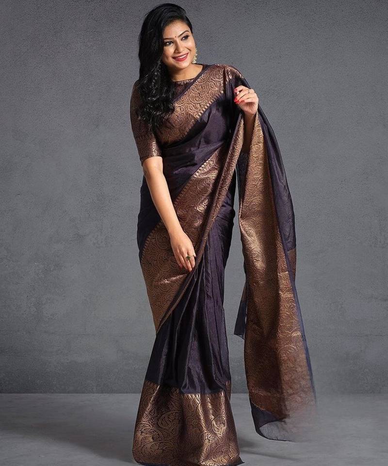 • Saree : Color- Copper / Fabric- Art Silk • Blouse : Color- Black / Fabric- Art Silk Saree Details
