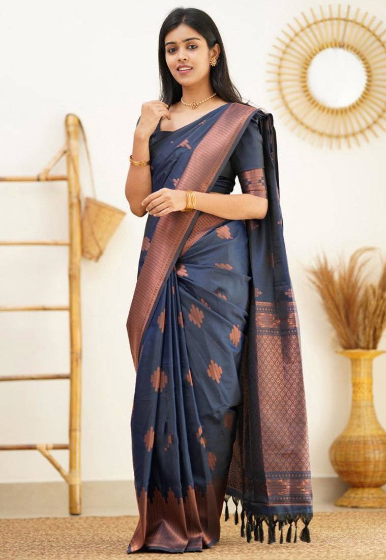 • Saree : Color- Navy Blue / Fabric- Art Silk • Blouse : Color- Navy Blue / Fabric- Art Silk Saree Details