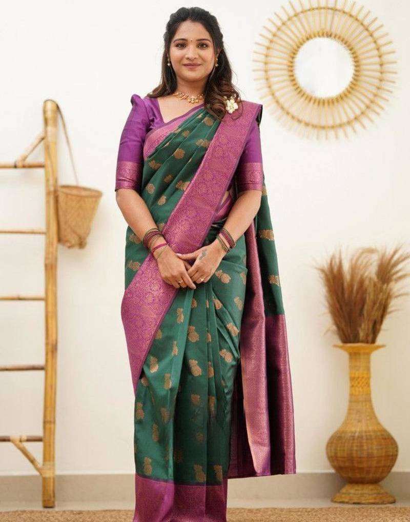 Fashionable Green Banarasi Art Silk Jacquard Saree With Unstitched Blouse