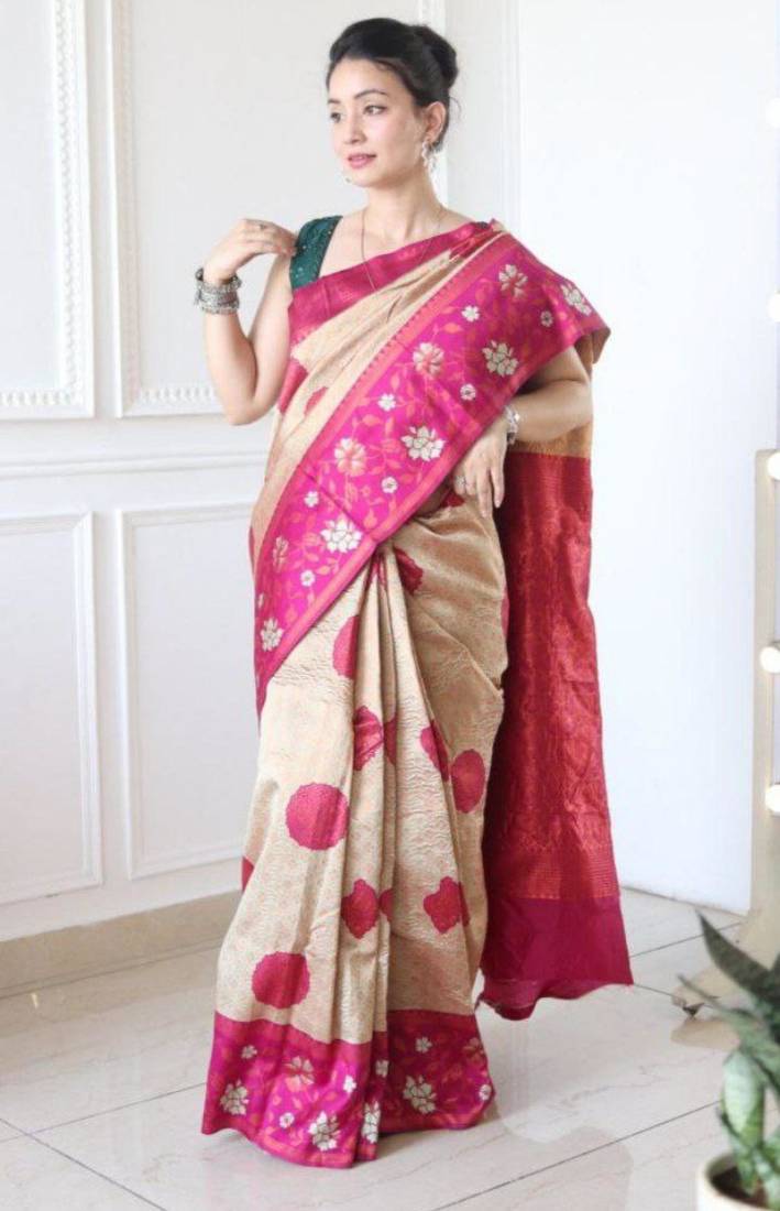 • Product Id : 4717084 • Package Details : 1 Saree/1 Blouse • Type : Art Silk Sarees • Region : Indian • Occasion : Wedding • Work : Woven • Type : Banarasi Silk • Look : Fashion • Pallu Style : Designer Pallu • Stitching : Unstitched • Width : 47 Inches • Length : 5.5 Metres Stitching [+]