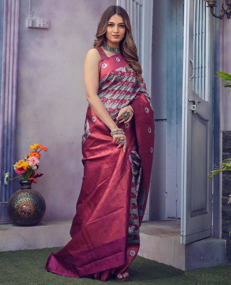 Light Weight Grey Self Design Silk All Seasons Saree With Unstitched Blouse