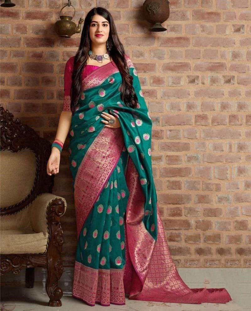 • Color : Green • Fabric Of : Art Silk • Work : Woven • Available : Yes • Size : 80 Cm • Fabric : Art Silk • Color : Green • Work : Woven • As Per Image : No Petticoat Details