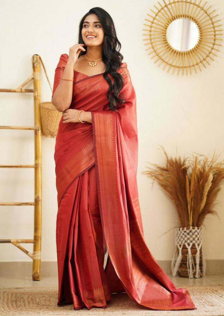 • Color : Red • Work : Woven • Fabric Of : South Silk • Available : Yes • Size : 80 Cm • Fabric : South Silk • Color : Red • Work : Woven • As Per Image : No Petticoat Details