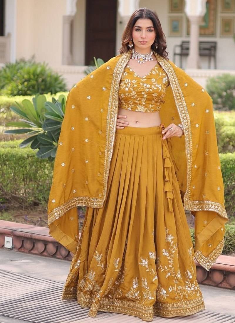 • Style : Circular Lehenga • Fabric : Art Silk • Work : Embroidered • Color : Mustard Dupatta Details