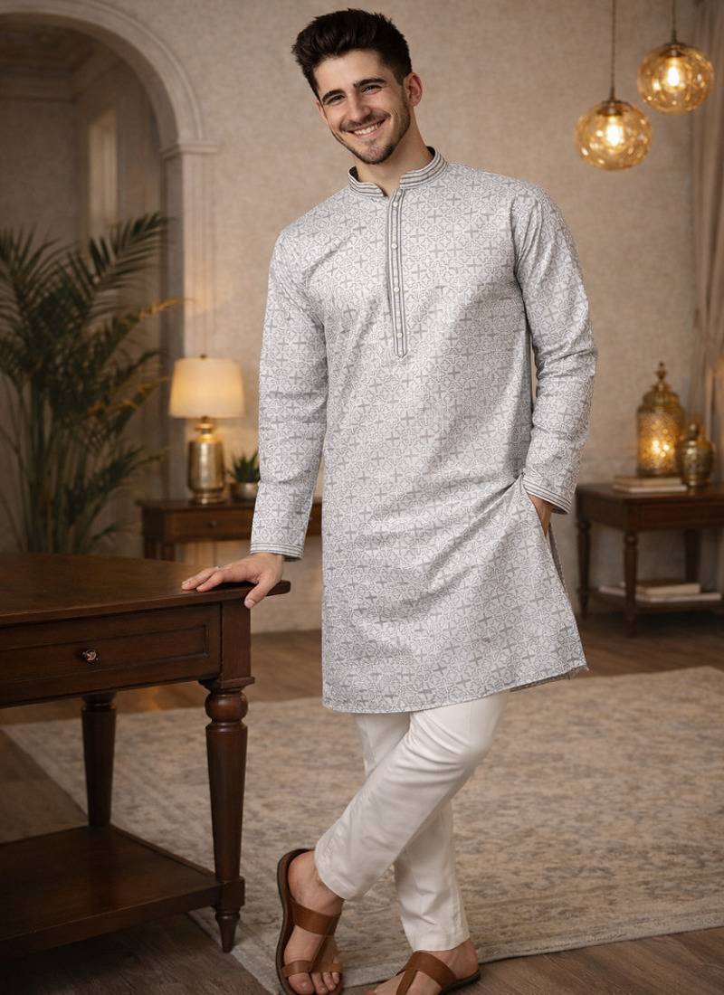 • Product Id : 4725047 • Package Details : 1 Kurta/1 Payjama • Type : Kurta Pajama • Occasion : Wedding • Fabric : Jacquard • Work : Woven • Type : Zari Woven • Look : Traditional • Sleeve : Full Sleeve • Neck Style : Round Neck • Color : Grey • Bottom Fabric : Cotton • Bottom Color : Off White • Top Color : Grey • Top Fabric : Jaquard • Bottom Style : Pyjama • Stitching : Stitched Payments [+]