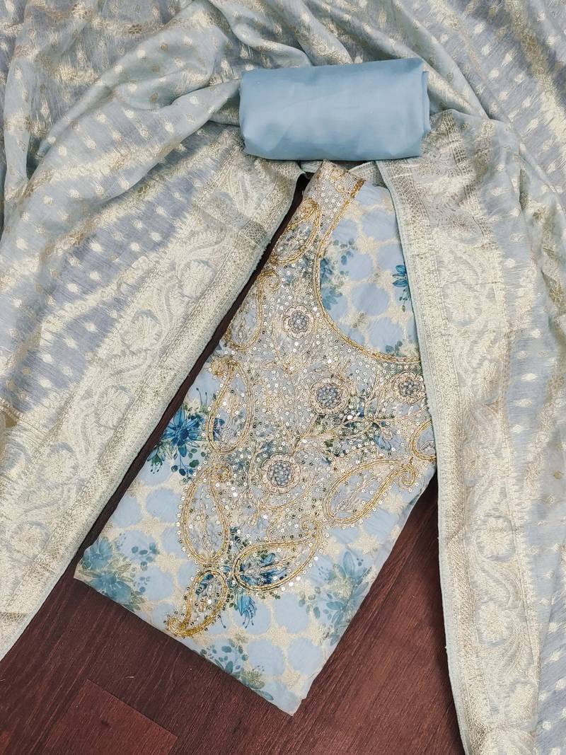 Blue Banarasi Modal Digital Print Unstitched Dress Material