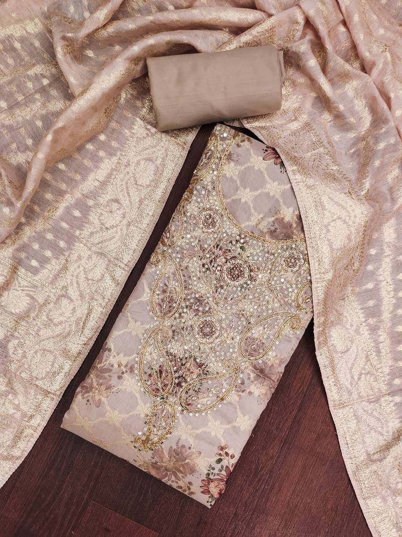 If you find the product for less we'll match it! Know MoreKimisha Presents Beautifully Designed & Latest In Trends Women's Ethnic Banarasi Modal With Digital Print Un-stitched Straight Suit. It Is Available In Free Size And Can Be Stitched To Suit Your Measurements. It Is Alterable Up To Chest Size Of 46, Comes With Banarasi Jacquard Fancy Dupatta and Plain Santoon Un-Stitched Bottom. This Dress Would Add Elegance To Your Look. Wear It At Any Occasion By Pairing It With Matching Ethnic Jewelary Like Ethnic Jumkas And Ethnic Footwear Like Mojaris and Juties To Get Complete Ethnic As Well As Fab Festive Look & Get Complimented For Your Impressive Choice.