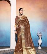 Brown Tissue Cotton Silk Blend Sequence Zari Work Saree With Unstitched Blouse Piece