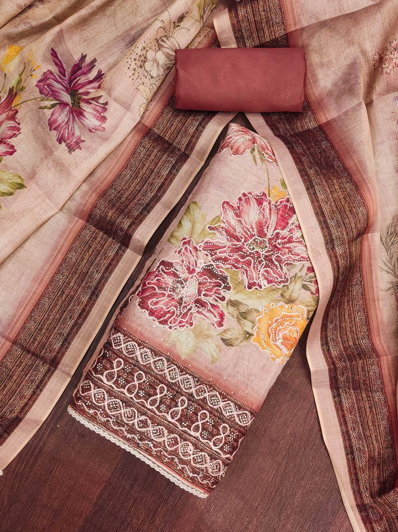 Maroon Cotton Silk Embellished Unstitched Dress Material
