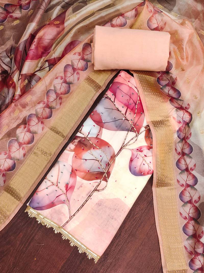 Peach Rayon Cotton Printed Unstitched Dress Material