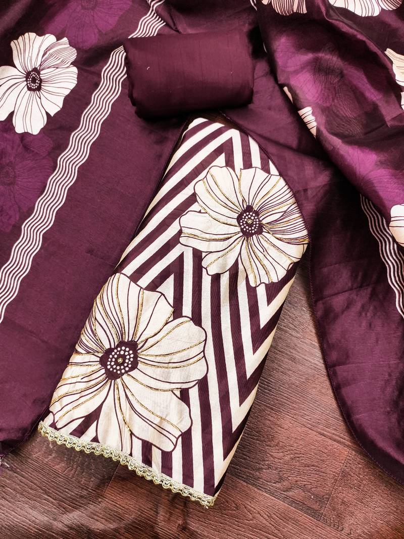 Wine Silk Cotton Digital Print Unstitched Dress Material