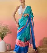Blue Satin Georgette Printed Saree With Unstitched Blouse