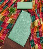• Kameez : Color- Sea Green • Dupatta : Color- Multicolor / Fabric- Chiffon • Bottom : Color- Sea Green / Fabric- Cotton Kameez Details