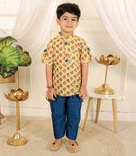 • Product Id : 4252934 • Package Details : 1 Kurta / 1 Pants • Type : Kids Kurta Pyjama • Work : Printed • Type : Floral Print • Look : Designer • Sleeve : Half Sleeve • Neck Style : Chinese Collar Kameez • Bottom Fabric : Cotton • Bottom Color : Blue • Top Color : Yellow • Top Fabric : Cotton • Bottom Style : Pyjama • Stitching : Stitched • Gender : Boy • Chunari Length : Na Payments [+]