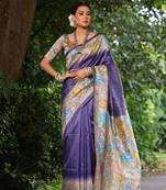 Purple Soft Tussar Silk Saree With Kalamkari Print And Digial Printed Pallu With Blouse