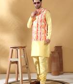 • Product Id : 4616178 • Package Details : 1 Kurta / 1 Churidar / 1 Nehru Jacket • Type : Nehru Jacket • Work : Printed • Look : Traditional • Bottom Style : Churidar • Sleeve : Full Sleeve • Color : Yellow • Top Color : Yellow • Top Fabric : Silk Blend • Bottom Fabric : Silk Blend • Fabric : Silk Blend • Stitching : Stitched Payments [+]