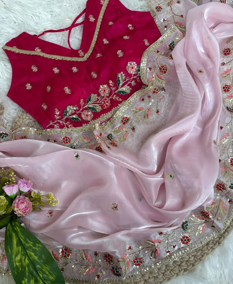 Festival Wear Pink Fandy Silk Embrodiery Saree For Women